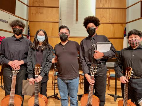 Rey Rodriguez is one of these incredible students who came full-circle with Austin Classical Guitar’s Education Program. Rey began his guitar journey with us at Bedichek Middle School. He continued on through our program at Crockett High School, graduating in 2019. He now attends the University of Texas Butler School of Music with a focus in guitar, and has recently become a teaching artist in some of our education programs, including Bedichek Middle School!